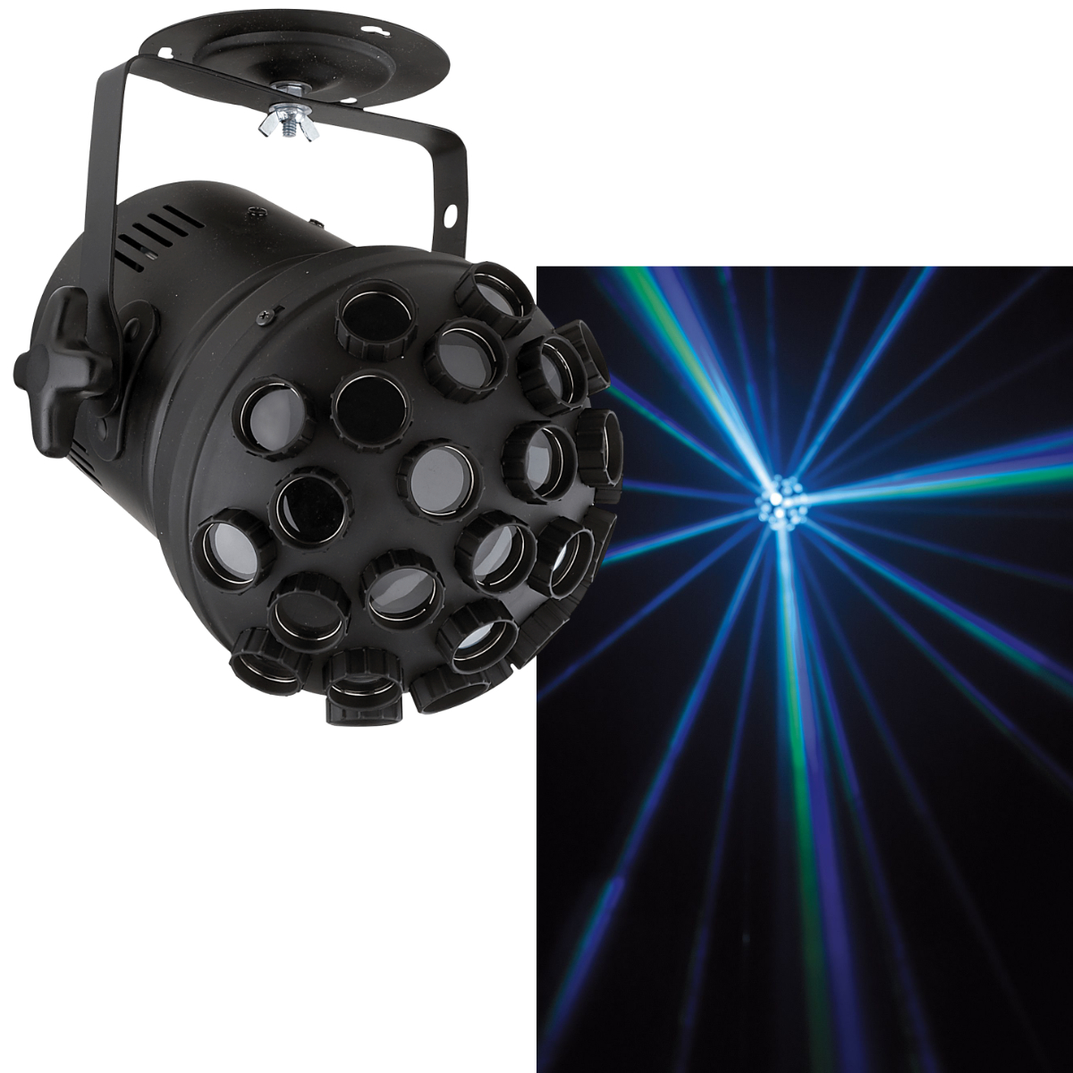 Deze geweldige Pinball effecten lamp zorgt voor diverse roterende lichtbundels op de dansvloer. Hierdoor ontstaat een zeer ruimtelijk en kleurrijk effect dat door middel van rook nog eens extra kan worden geaccentueerd en de lichtbundels mooi zichtbaar worden.