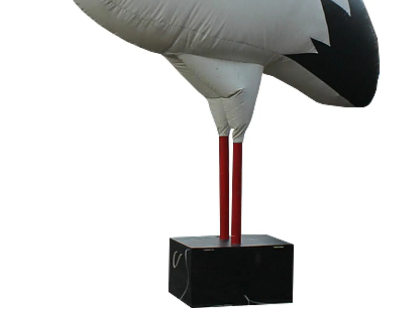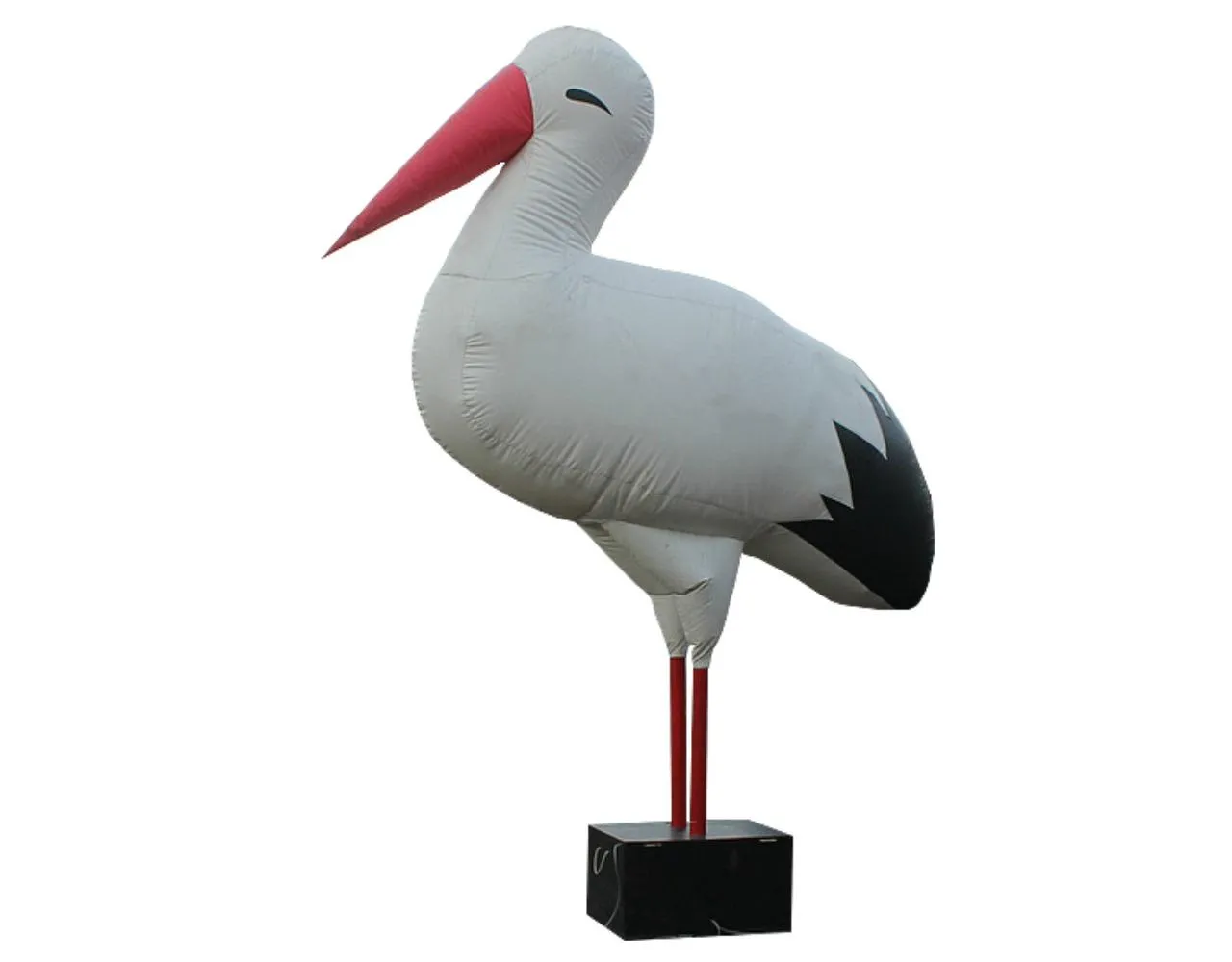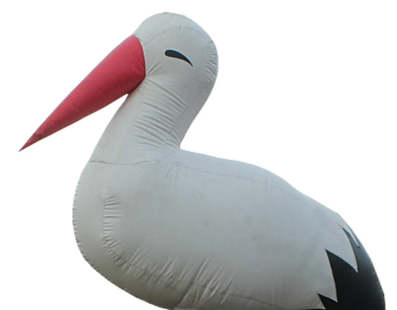 Een schitterende opblaasbare ooievaar met maar liefst een hoogte van 4,5 meter. Bij een geboorte van een baby wil je dit natuurlijk aan iedereen laten weten, huur dan onze opblaasbare ooievaar waardoor je een geweldig opvallend object in je tuin hebt staan en iedereen op de hoogte wordt gebracht dat er een pasgeboren baby is. Deze opblaasbare ooievaar hoeft natuurlijk niet alleen in een tuin te staan maar kan ook worden geplaatst op b.v. je oprit.