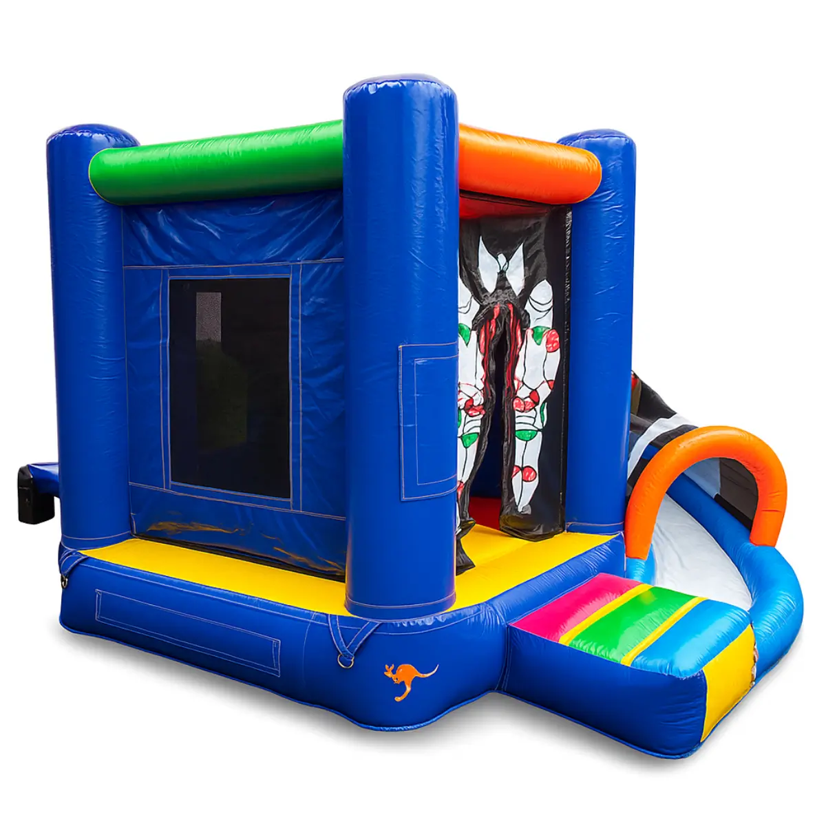 De mini Multifun heeft veel speel- en springvermogen. Dit komt o.a. door de halfronde glijbaan die van de zijde naar voren toe glijdt. (Hierdoor heeft u ook geen inloop) Doordat dit springkussen klein is, is het ideaal voor kinderverjaardagen van kleinere kinderen, of feestjes waarbij weinig ruimte is.